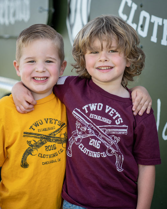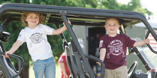 We have sizes from infant to youth with Two Vets Clothing Company designs.